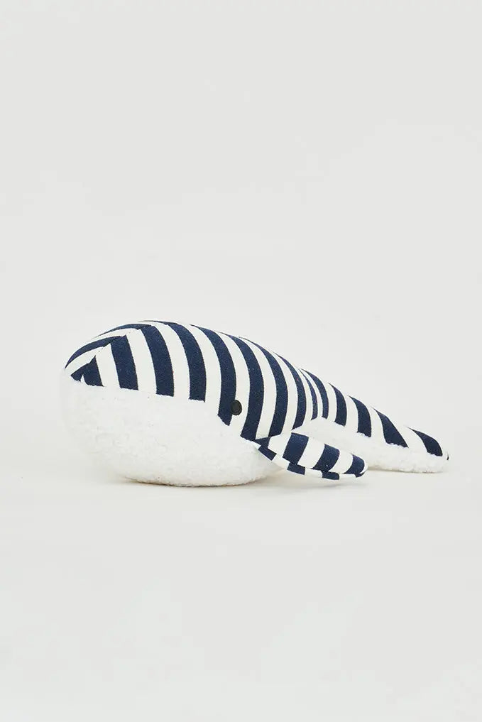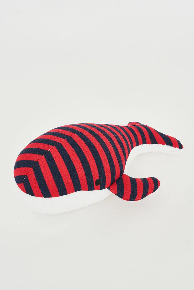 Set de peluches ballenas: diseño en dos colores a rayas este encantador set de dos peluches con forma de ballenas está diseñado para brindar abrazos acolchados y una dosis extra de ternura. Confeccionadas en suave algodón a rayas, estas ballenas añaden un toque náutico y estilizado a la habitación de tus pequeños. Su diseño juguetón y colores vibrantes estimulan la creatividad y se convierten en los compañeros ideales para aventuras imaginarias. Blanco, azul y rojo. Dimensiones: l: 31 cm – h: 11 cm.