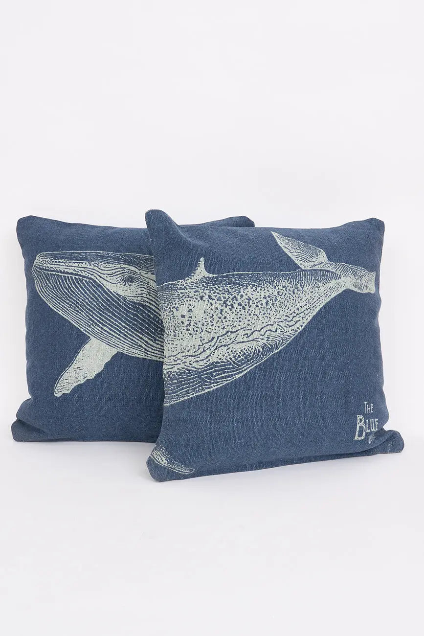 Set de 2 cojines en algodón, donde el diseño de una hermosa ballena se extiende a lo largo de ambos cojines, creando un efecto visual impactante y armonioso. Perfectos para darle un toque náutico a tu sala de estar o dormitorio. Dimensiones: l: 45 cm – h: 45 cm.