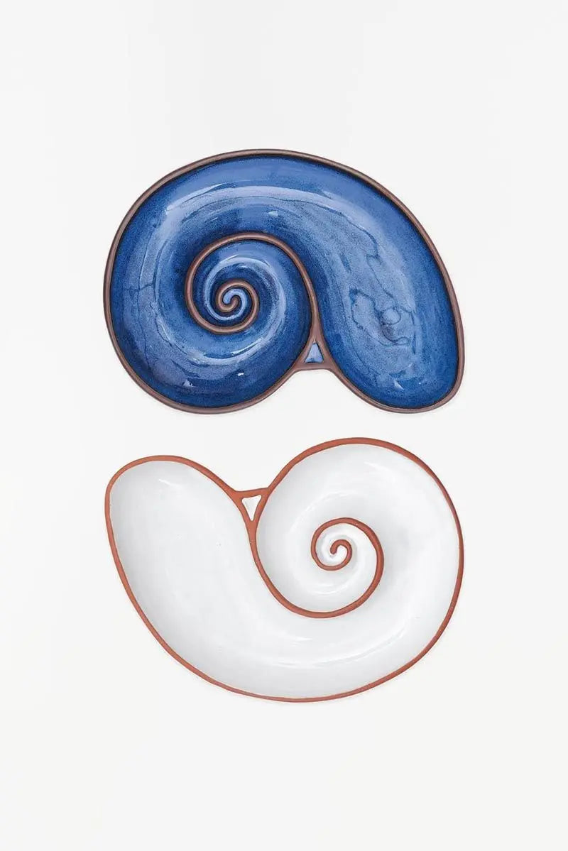 Set de 2 platos o bandejas de cerámica con forma de concha marina en dos colores en la versión más grande de las 3. Ideal para darle un toque náutico o marinero a tu cocina. Sorprende a tus invitados o haz un regalo especial. Dimensiones: l: 24 cm – w: 17 cm – h: 2,8 cm.