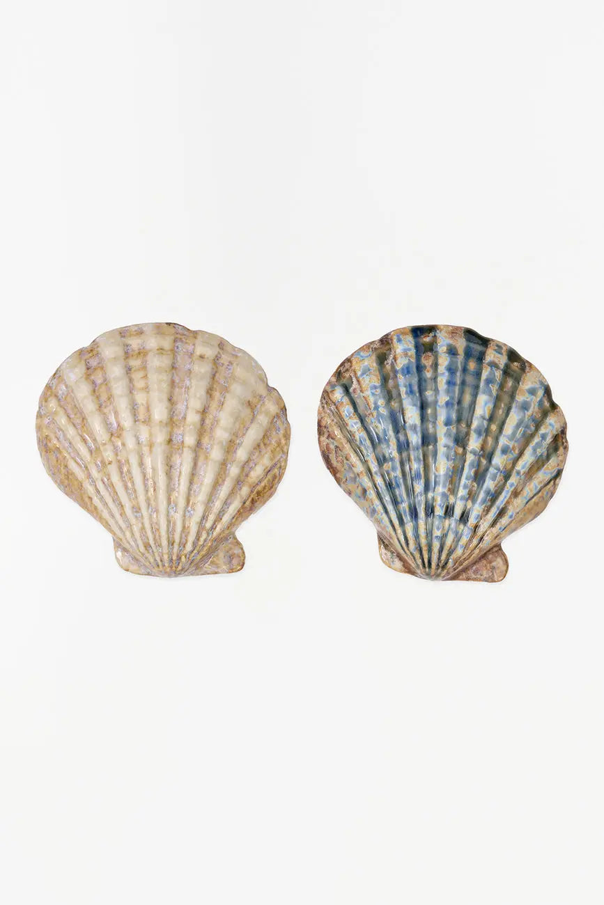 Set de 2 platos o cuencos con forma de concha de vieira es un accesorio único para darle un toque marinero a tu mesa o decoración. Dimensiones: l: 16 cm – h: 4,5 cm.