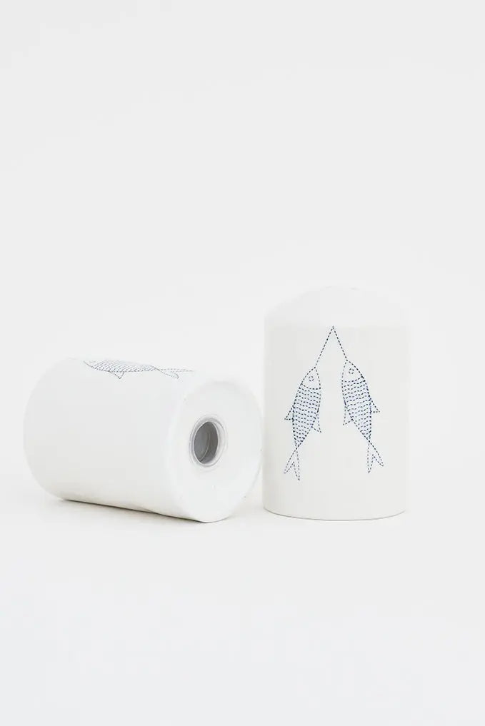 Set de salero y pimentero en cerámica: decoración marinera añade un toque elegante y marino a tu mesa con nuestro set de salero y pimentero en cerámica. Estos encantadores accesorios presentan detalles de peces que elevan la estética de tu mesa. Fabricados con cerámica de alta calidad, este set no solo es funcional sino también una pieza decorativa. Dimensiones: l: 6 cm – h: 9 cm.