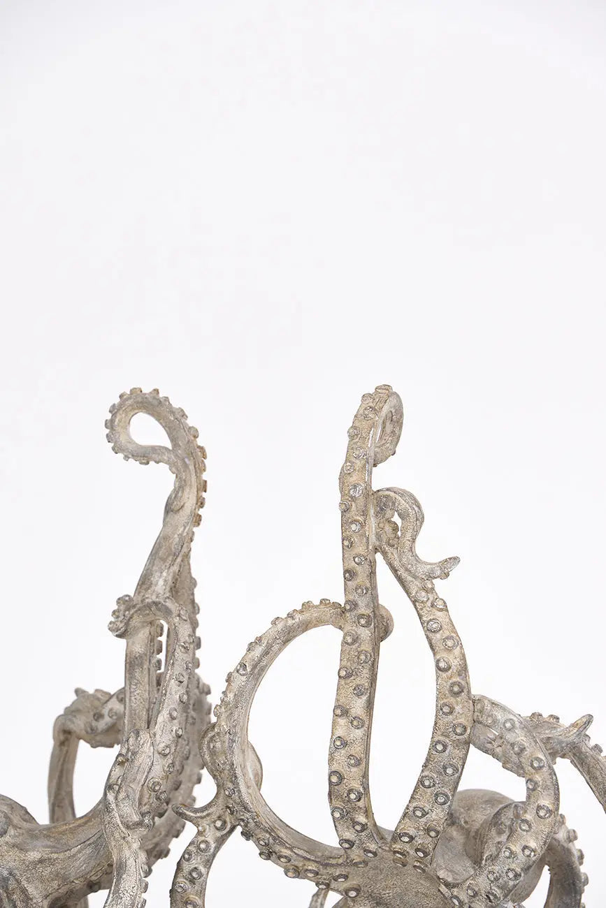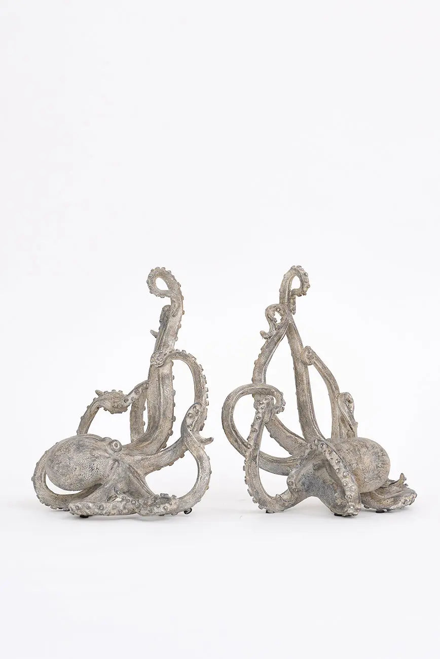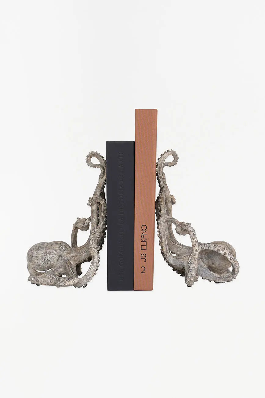 Set de sujetalibros con forma de pulpo hechos en resina. Este set de sujetalibros de resina, con forma de pulpo, combina funcionalidad y diseño marino. Las texturas realistas capturan la esencia de este animal marino. Su estética aporta un toque sofisticado a tu estantería o espacio de lectura. Dimensiones: l: 30 cm – w: 19,5 cm – h: 25 cm.