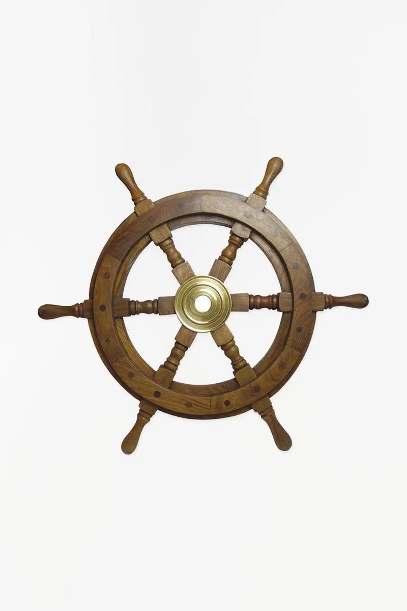 Timón decoración náutica de madera. La parte central del timón está hecha en latón. 75 cm. Dimensiones: ø: 75 cm.