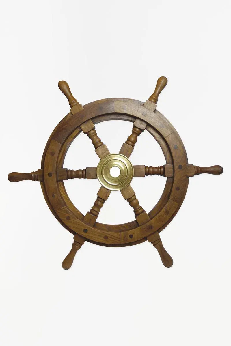 Timón decoración náutica de madera. La parte central del timón está hecha en latón. 110 cm. Dimensiones: ø: 110 cm.
