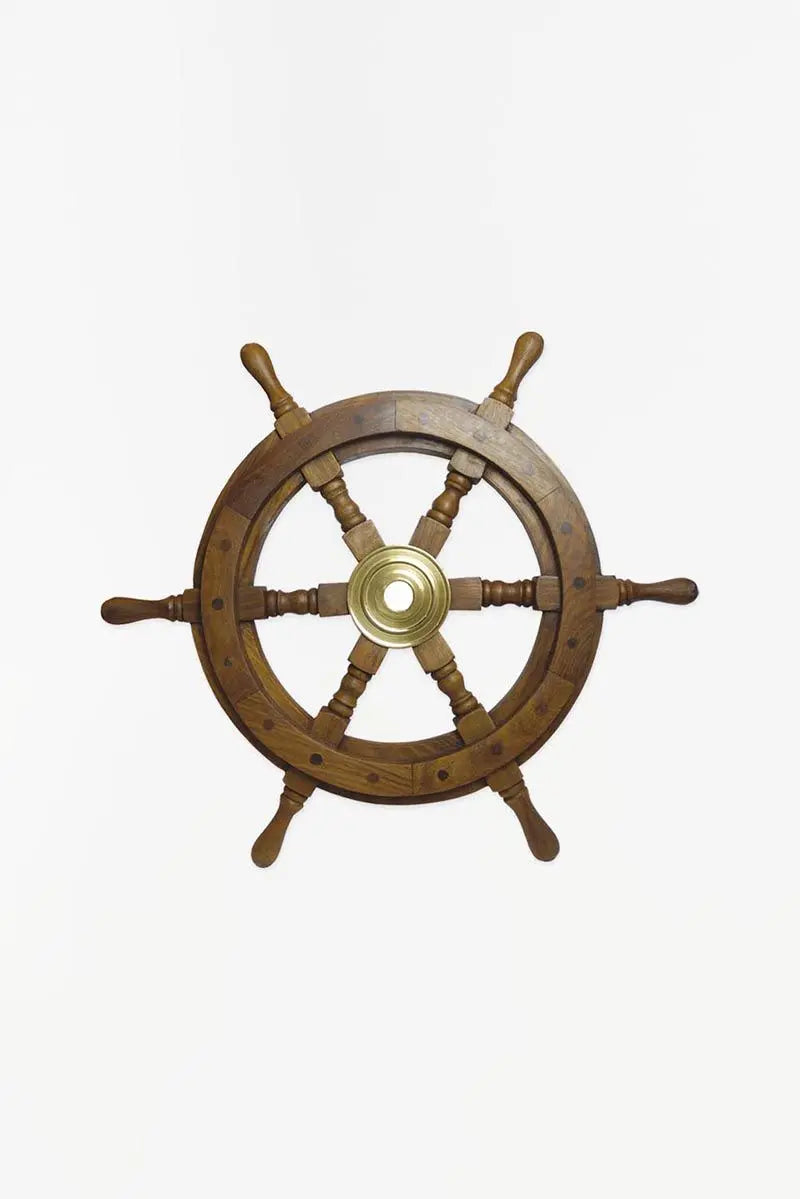 Timón de madera. La parte central del timón está hecha en latón. 60 cm. Dimensiones: ø: 60 cm.