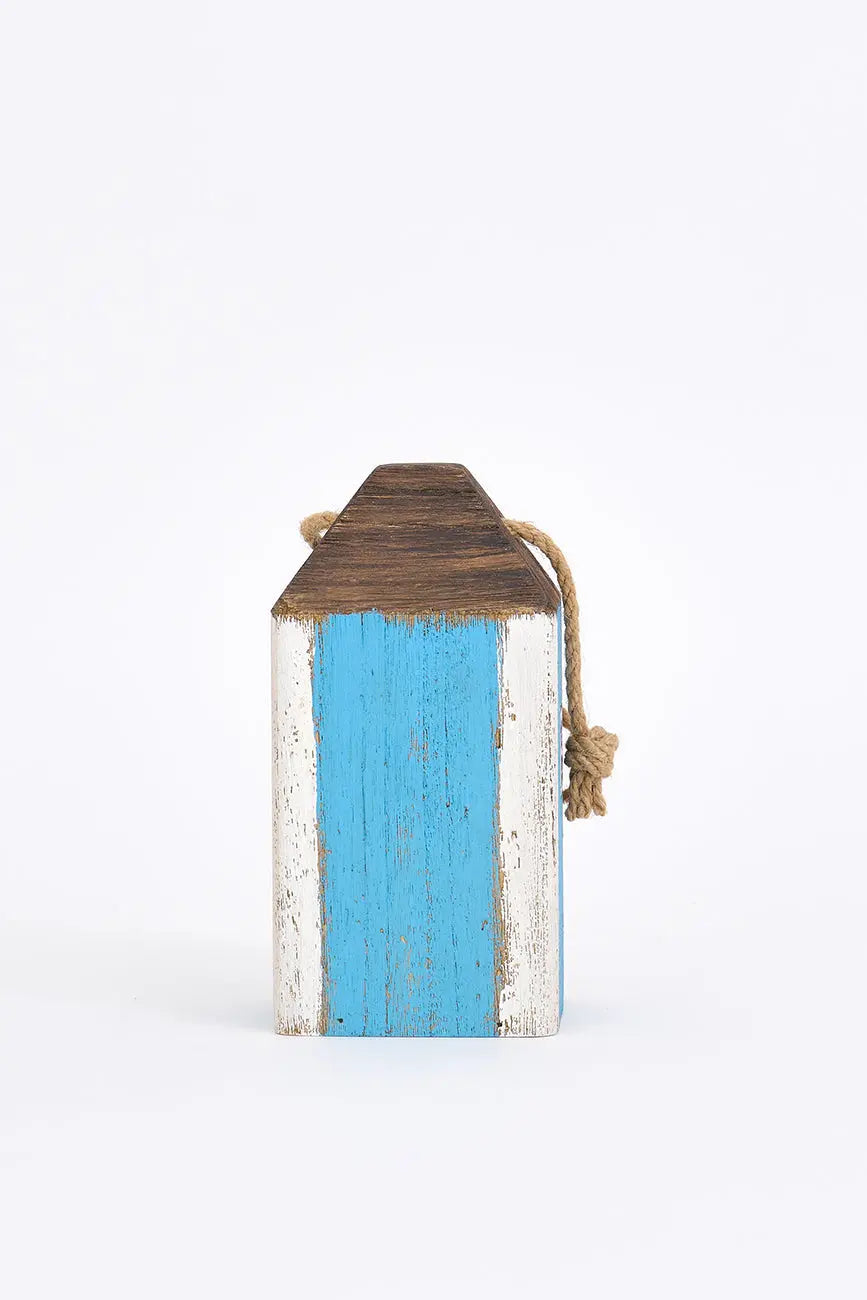Tope de puerta de madera envejecida en forma de casa de puerto, un detalle náutico encantador. Perfecto para mantener tus puertas abiertas y añadir un toque costero a tu hogar. Dimensiones: l: 10,5 cm – w: 10,5 cm – h: 20 cm.