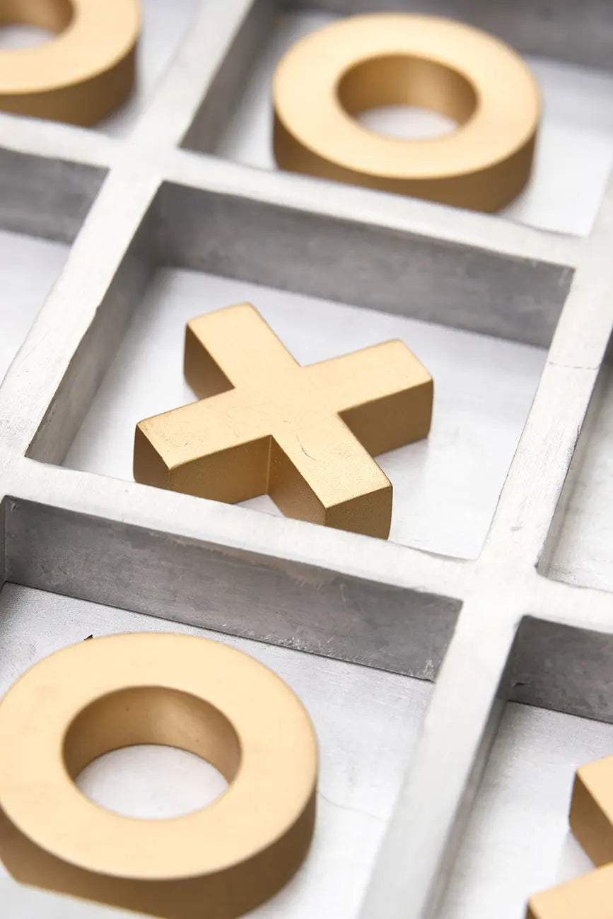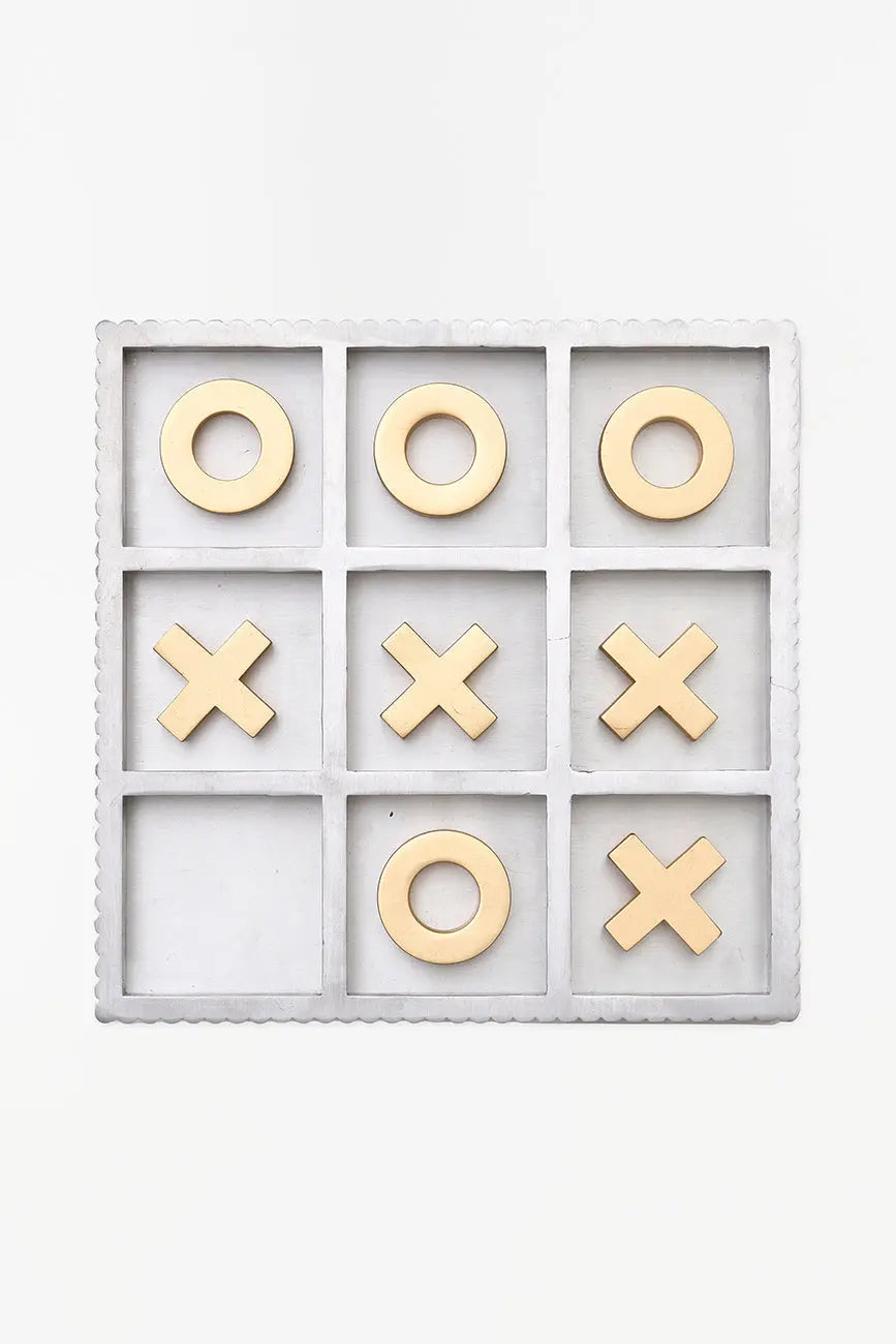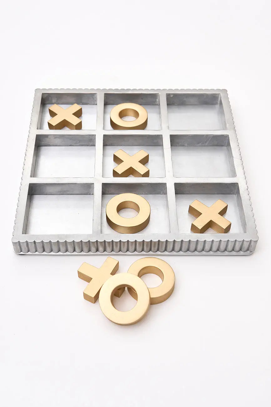 Juego de tres en raya de metal. Este juego de tres en raya de metal combina diversión clásica con un diseño moderno. Sus piezas están elaboradas en metal resistente, aportando elegancia y durabilidad. Perfecto para disfrutar de una partida relajante o como un original elemento decorativo. Dimensiones: l: 20 cm – h: 20 cm.