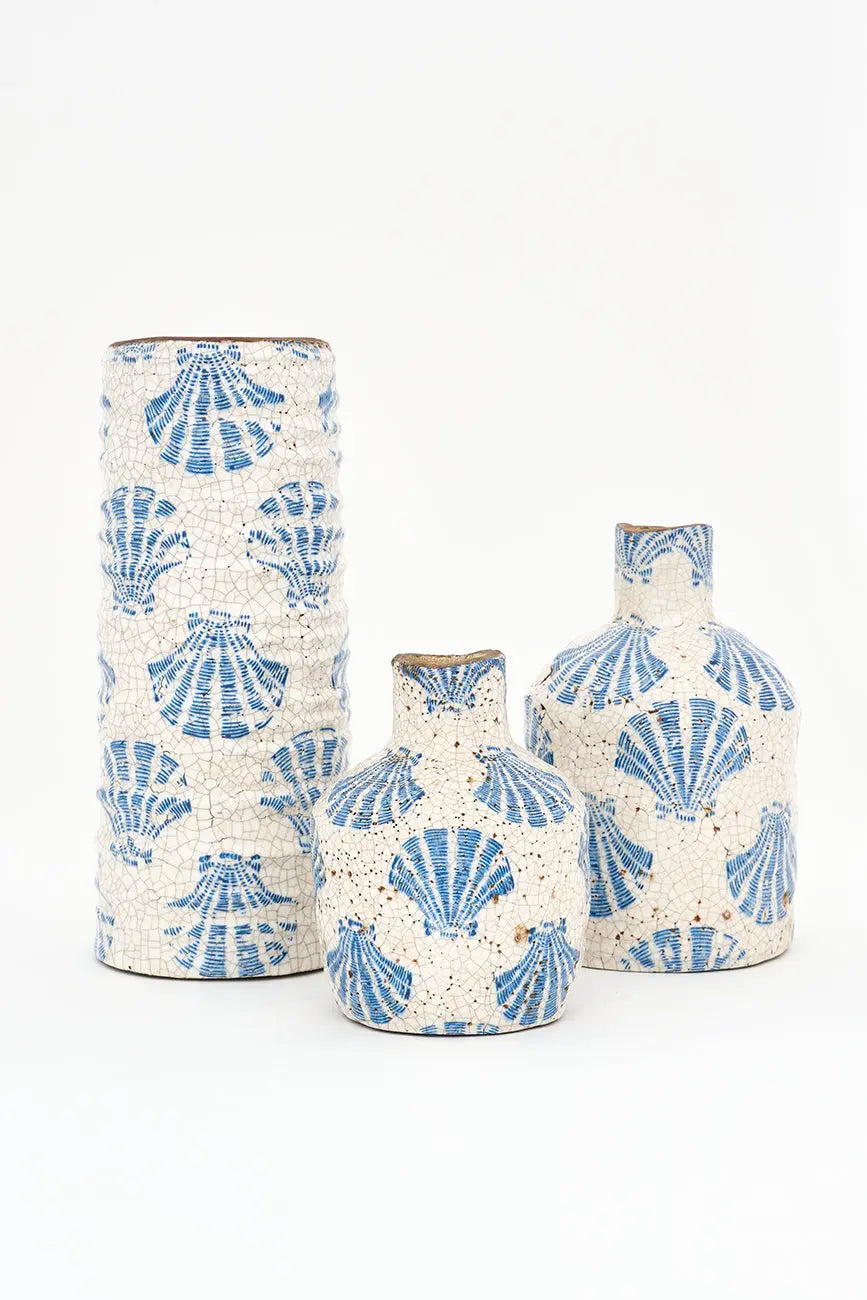 Vasija de terracota con conchas estampadas a mano esta elegante vasija de terracota destaca por sus delicados estampados de conchas realizados a mano, que evocan la serenidad y belleza de las costas. Su acabado artesanal y textura natural aportan calidez y autenticidad a cualquier espacio. Ideal como elemento decorativo o para exhibir flores secas, esta pieza añade un toque costero y rústico a la decoración de tu hogar. Dimensiones: h: 18 cm – ø: 12 cm.