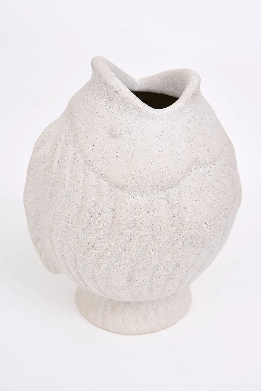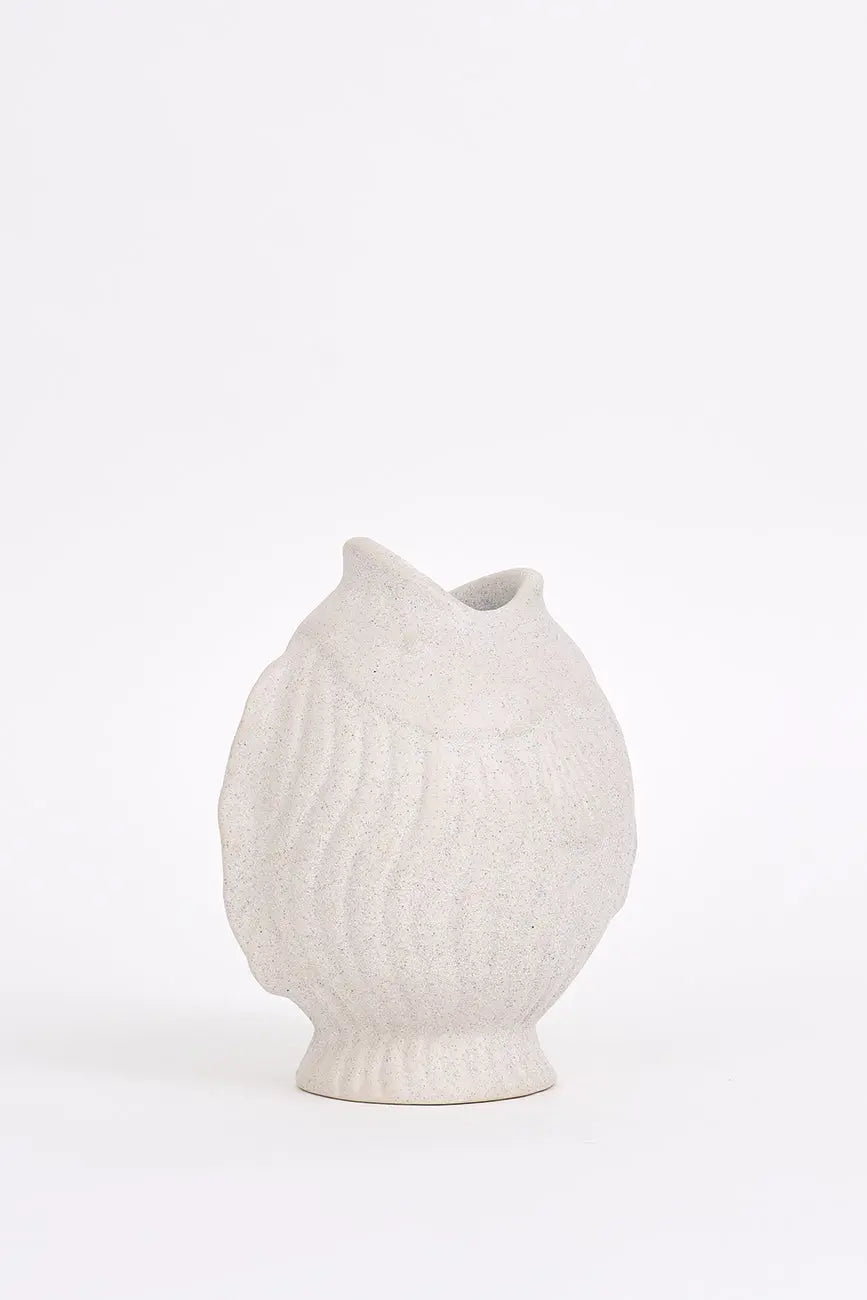 Vasija con forma de pez en porcelana, color blanco, una pieza elegante y versátil que añade un toque marinero y sofisticado a tu hogar. Fabricada en porcelana de alta calidad, esta vasija puede usarse como florero para mostrar tus plantas o flores favoritas, o simplemente como un elemento decorativo único. Dimensiones: l: 18 cm – w: 16,5 cm – h: 22,5 cm.